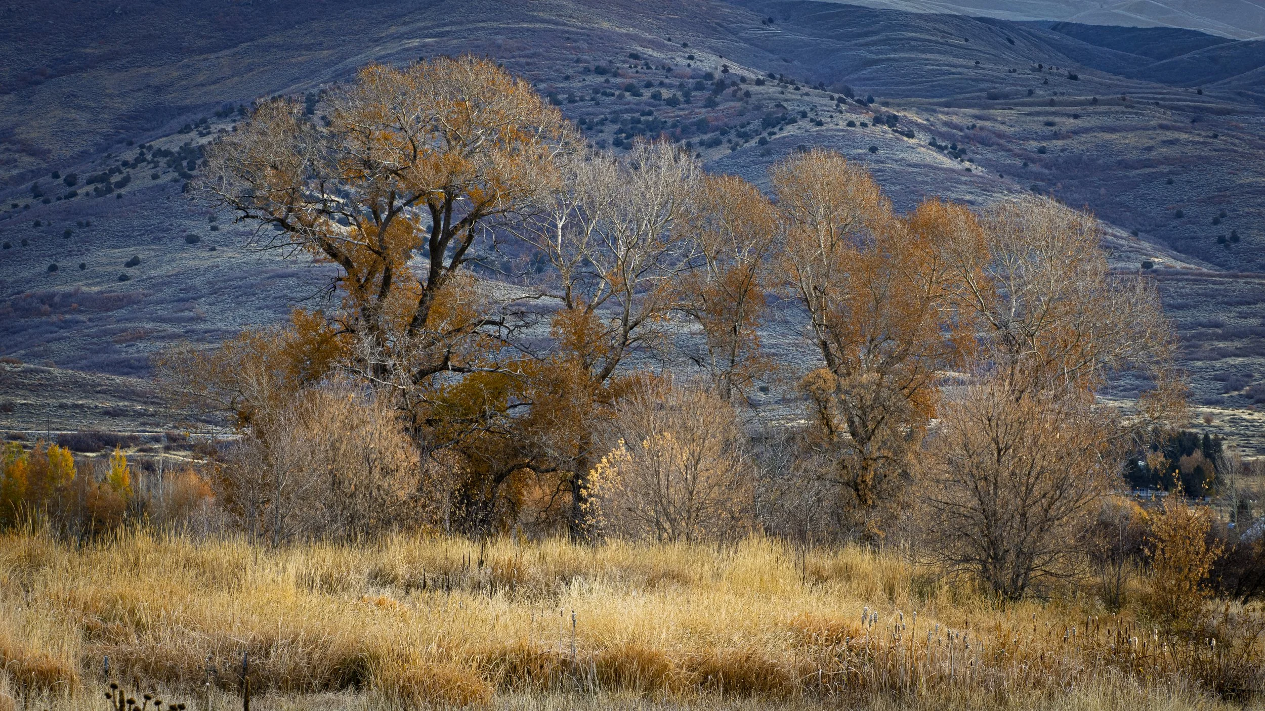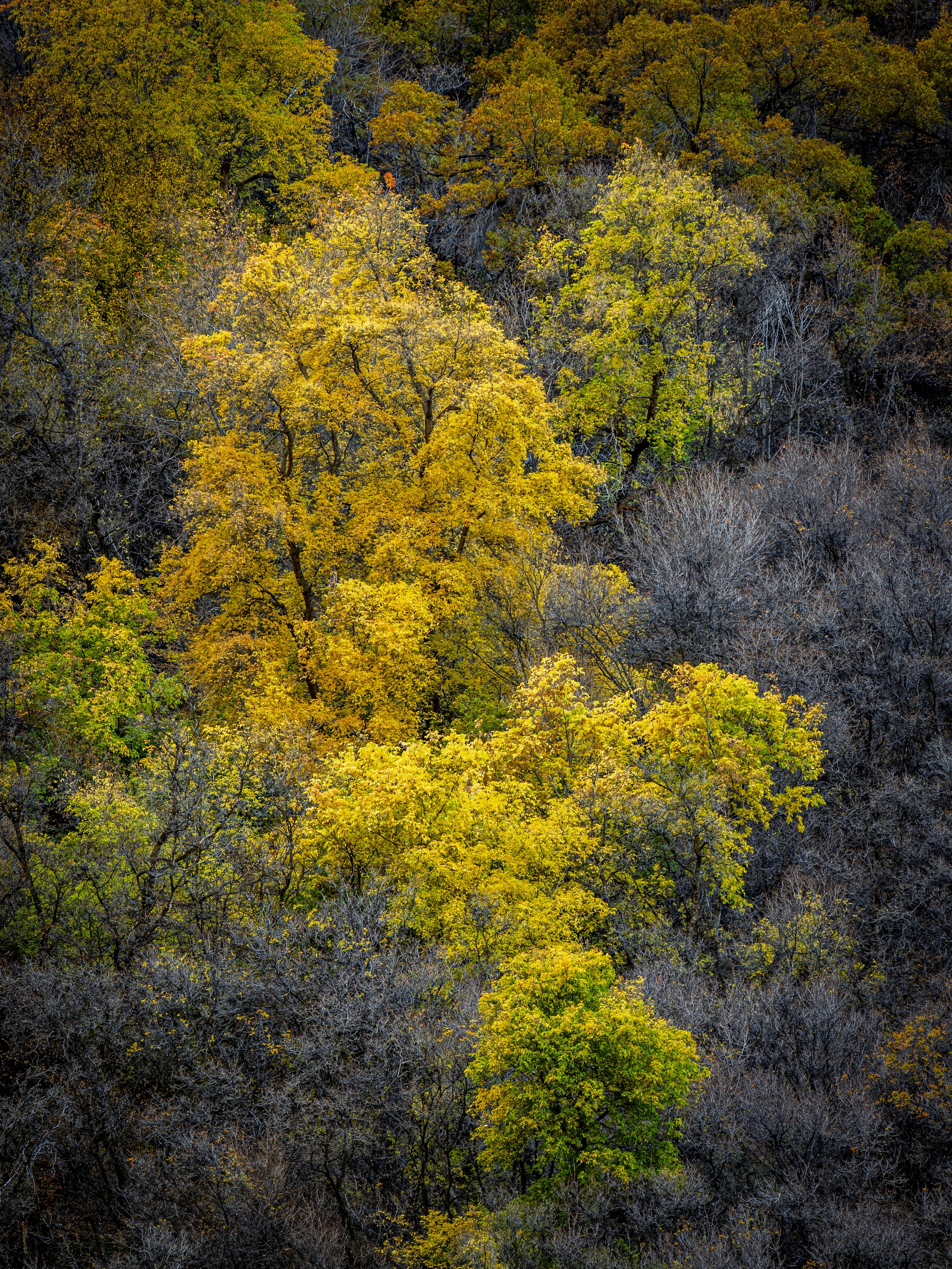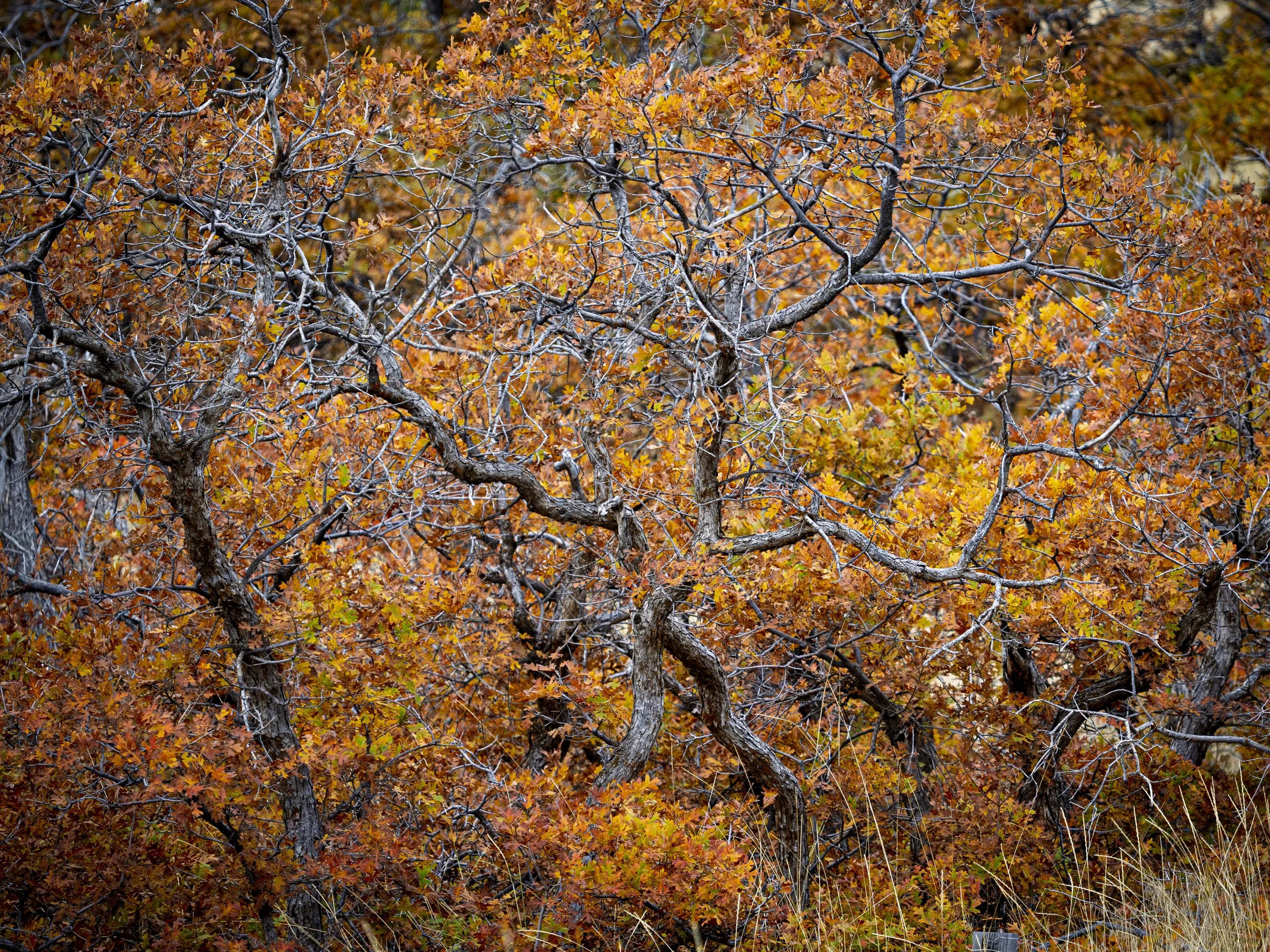 I follow a few British photographers on YouTube. There are many old-growth forests across their island. I love seeing the images they compose in a chaotic forest setting. Forests are hard to shoot because one must control the many random elements in an attempt to compose order. I particularly enjoy seeing their old and gnarly oak trees that have such interesting structure and texture. Some of their specimens are 900+ years old. By contrast, I live in the desert Southwest, and I have no such forests to roam through and shoot photos of. The oaks in my neighborhood, on the foothill slopes of Mt. Timpanogos are scraggly in comparison. Our oaks are called scrub oaks, and it seems to be a fitting name next to the forest giants of old Great Britain. Mine are not forests stands I can wander through. The best I can do is find a grouping on the hillside and shoot into the thicket. There is no wandering within.
